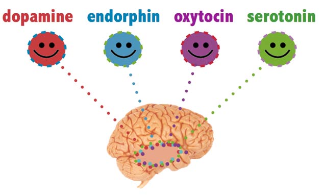 Imagine your well-being as a strong, healthy tree. Just like any tree, it needs different parts to stay balanced, grow, and thrive. Four natural chemicals in our bodies – dopamine, serotonin, oxytocin, and endorphins are like the essential parts of this tree.