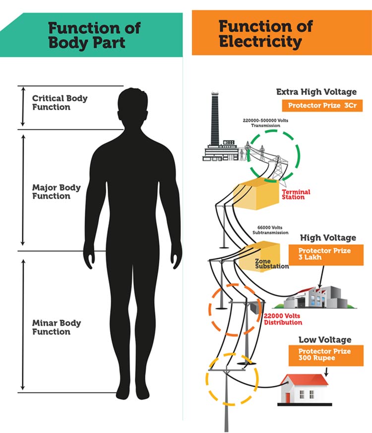 Just as power transmission is stepped down from high to low voltage for efficiency and safety, the human body manages critical functions and senses in a similar hierarchy, with our senses operating at the highest ‘voltage’ of awareness.